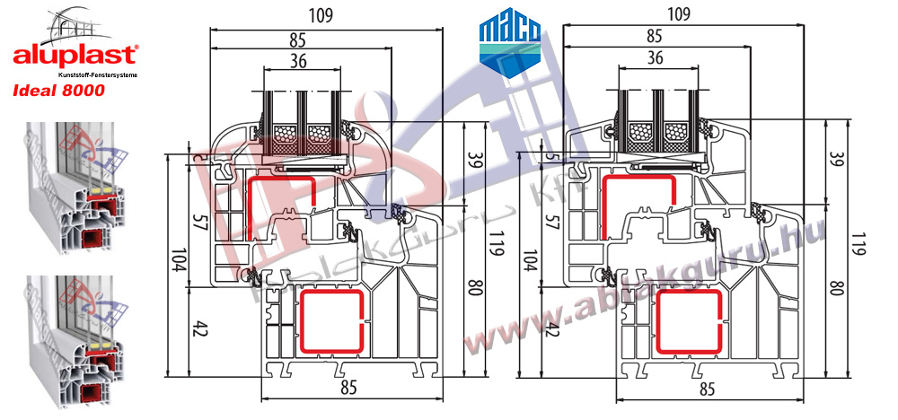 Profil: Aluplast Ideal 8000Beépítési mélység: 85mmLégkamrák: HatGumi: HáromSzín: RAL 9016 Vasalat: MACO multi-matic Üveg: 4-12-4-12-4 (Ug=0,7) Gyártás: Péntektől 12 nap Raktárkészlet: nincs