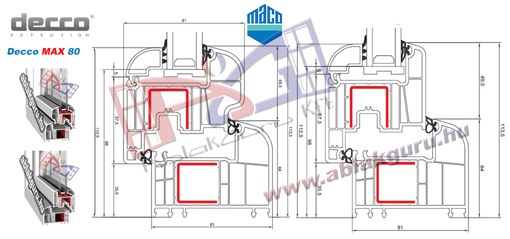 Profil: Decco MAX 80Beépítési mélység: 81mmLégkamrák: Hat Gumi: kettőSzín: RAL 9003 Vasalat: MACO multi-trend Üveg: 4-16AR-4 Gyártás: Péntektől 12 nap Raktárkészlet: nincs